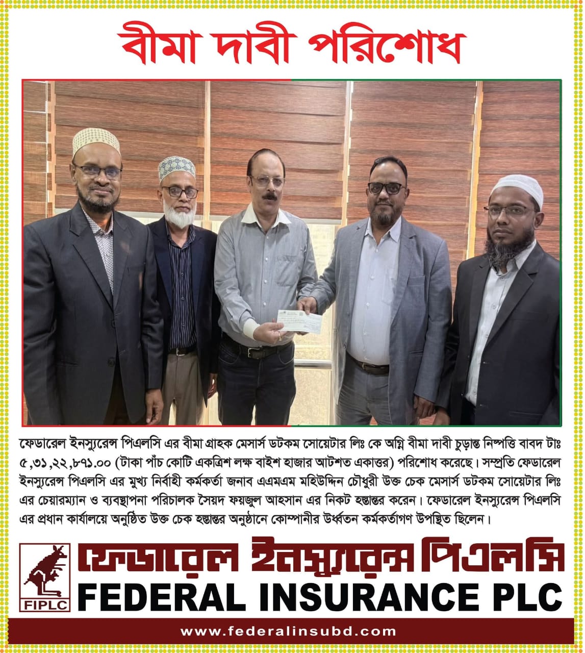 নন-লাইফ বীমায় আধুনিক প্রযুক্তি ও মানসম্পন্ন সেবায় এগিয়ে ফেডারেল ইন্স্যুরেন্স